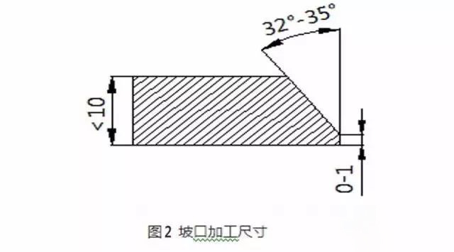 1.2 Select qualified plates in strict accordance with the design requirements of the drawings, determine the actual size of each material, use plasma cutting or machining to cut the material, and the grooves should be prepared by machining or grinding methods. For processing, the head is beveled by a grinder, and the specific dimensions are shown in Figure 2